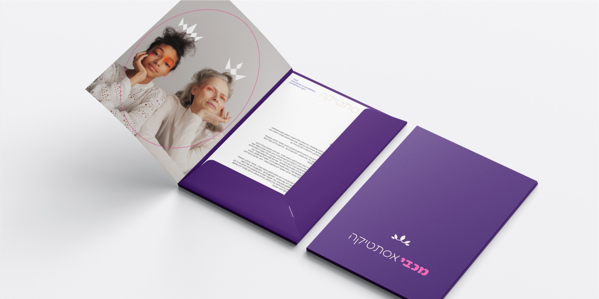 A simple insight guided our visual language journey: beauty is a spectrum and subjective. It is strengthened when Maccabi Aesthetics creates an environment that emphasizes individuality. To the basic Maccabi logo, we added the word aesthetics in a clean, delicate font. We created elements of crowns and mirrors to convey the idea that you are the queen of your world, the one who chooses and celebrates yourself.
